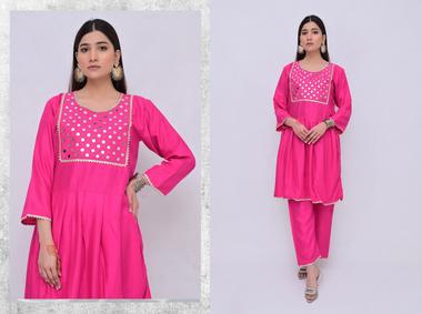Frock Style length 37+, Chest 20+, Trouser Length 36 Waist 30. Stuff : Self Cotton Note: Color of the article may vary from the uploaded picture Frock Style length 37+, Chest 20+, Trouser Length 36 Waist 30. Stuff : Self Cotton Note: Color of the article may vary from the uploaded picture