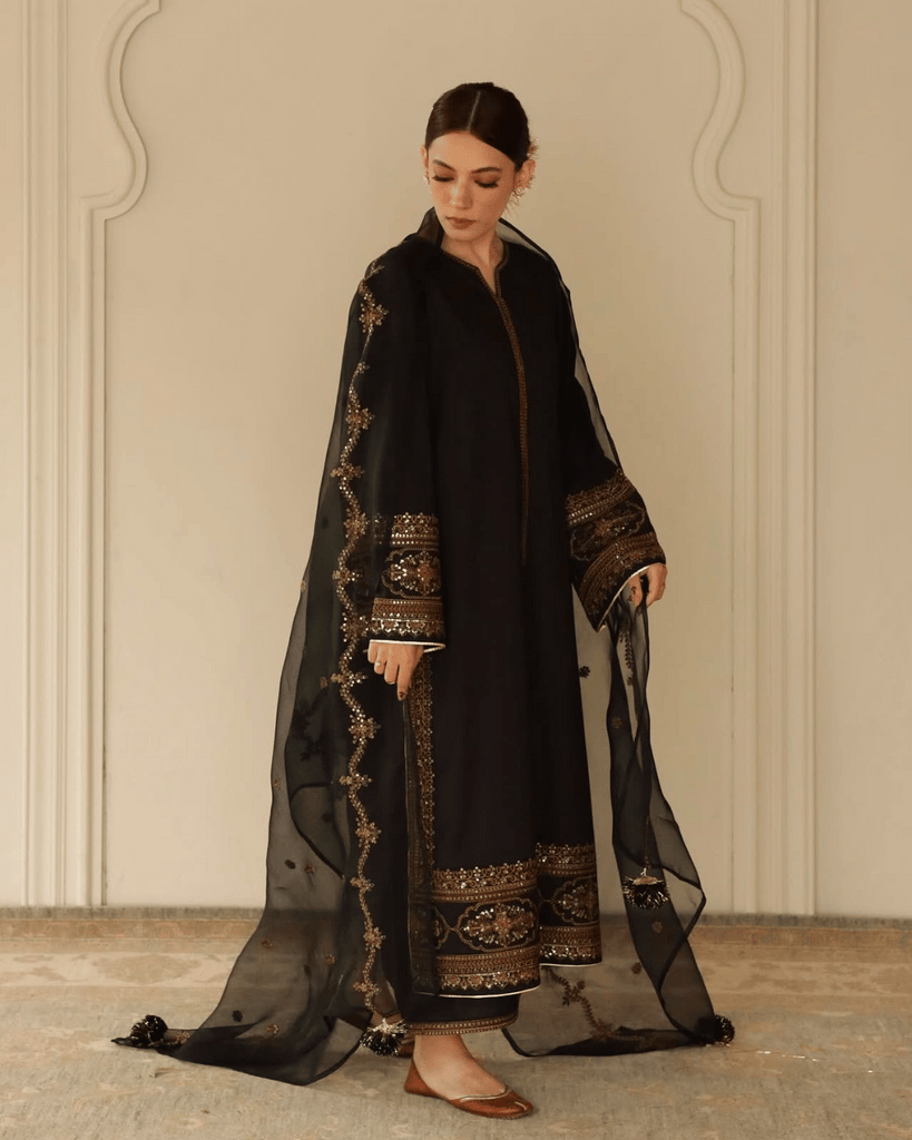 Step into timeless elegance with our Royal Black Attire, a masterpiece designed for the modern woman who values both style and comfort. Crafted with precision, this suit blends classic charm with contemporary sophistication — perfect for formal gatherings, festive celebrations, or a refined everyday look.